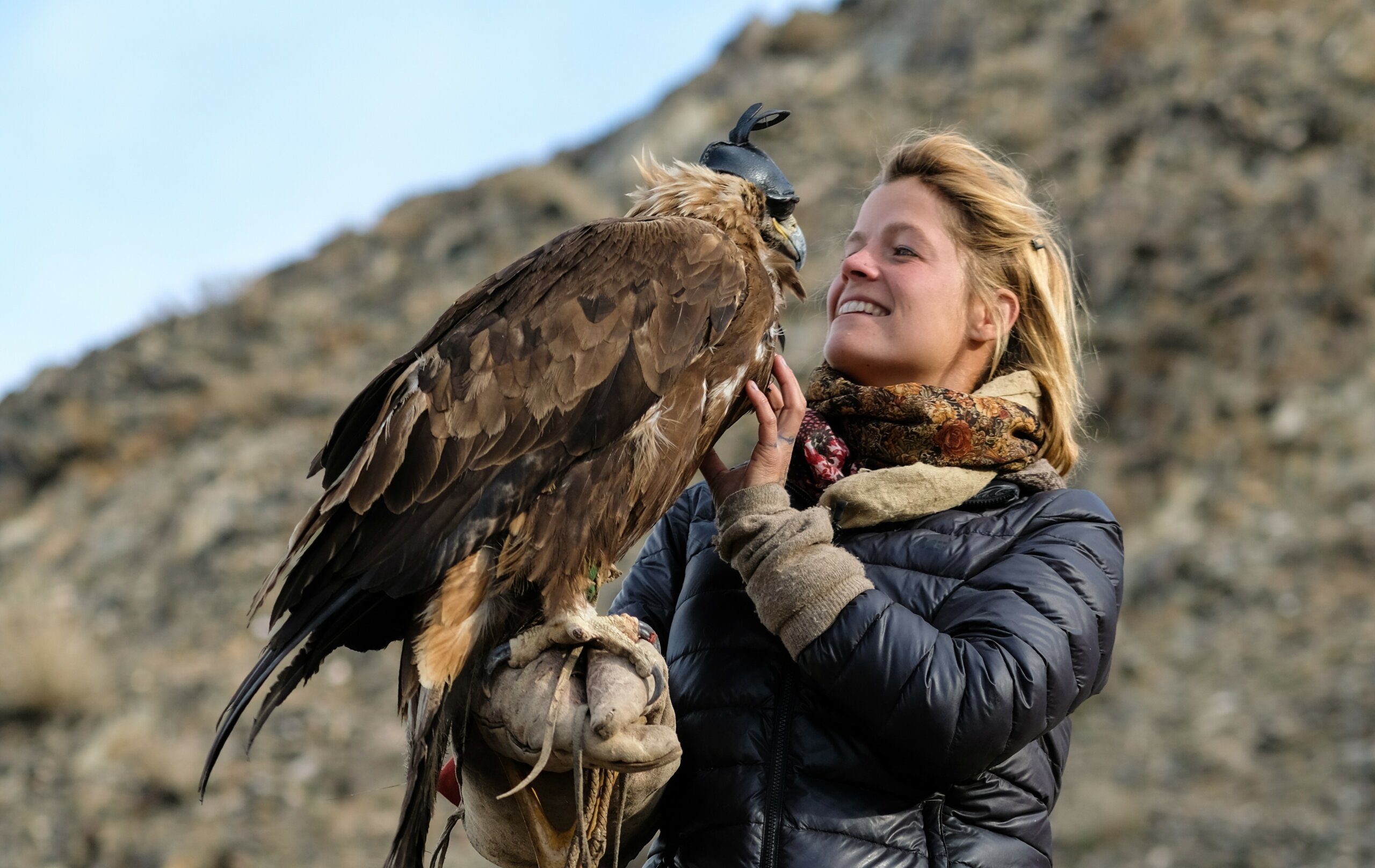 ‘Zo leven, daar was ik natuurlijk totáál ongeschikt voor. Ik wist niets van het leven als nomade. Ik sprak de taal niet, ik kon niet jagen en… ik kon niet eens paardrijden! Dus kwam ik aan bij de Adelaarjagers met een absoluut onrealistisch verlangen: leer mij leven zoals jullie dat doen. De Adelaarjagers dachten niet in termen als ‘onrealistisch’. Ik was welkom en het leerproces ontvouwde zich als vanzelf.’
